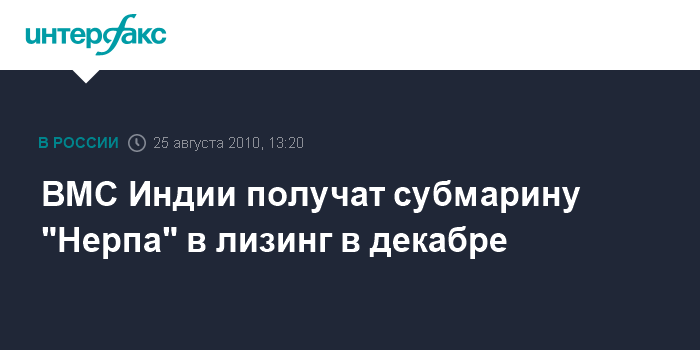 Москва. 25 августа. INTERFAX.RU - Передать атомную подводную лодку "Нерпа" индийским ВМС в лизинг планируется до конца этого года, сообщил "Интерфаксу" источник в штабе Тихоокеанского флота.