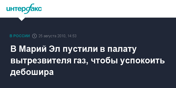В Марий Эл пустили в палату вытрезвителя газ, чтобы успокоить дебошира