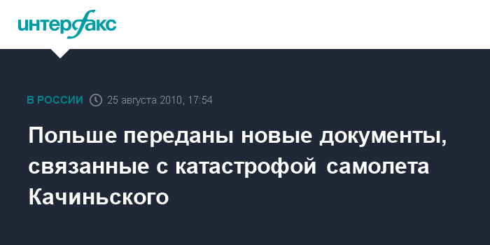 Москва. 25 августа. INTERFAX.RU - Россия передала Польше новые документы, касающиеся катастрофы под Смоленском в апреле самолета польского президента Леха Качиньского.