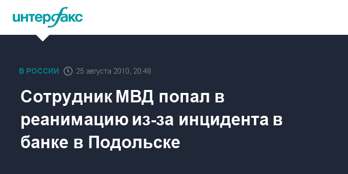 Сотрудник МВД попал в реанимацию из-за инцидента в банке в Подольске
