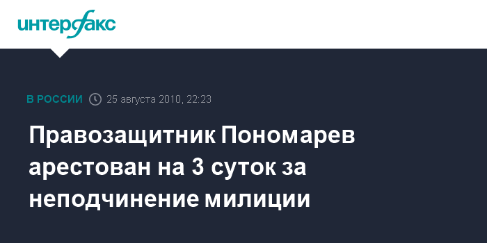 Правозащитник Пономарев арестован на 3 суток за неподчинение милиции