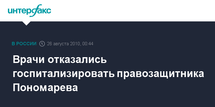 Москва. 26 августа. ИНТЕРФАКС - Врачи скорой помощи отказались госпитализировать правозащитника Льва Пономарева, и его перевозят из ОВД "Арбатское" в спецприемник для административно задержанных лиц, где он проведет трое суток, сообщила "Интерфаксу" его адвокат и дочь Елена Липцер.