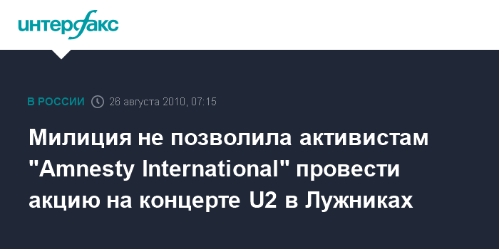 Милиция не позволила активистам "Amnesty International" провести акцию на концерте U2 в Лужниках