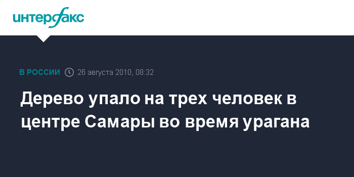 "По имеющимся у нас данным, во время урагана, сопровождавшегося ливнем, на пешеходной улице Ленинградская (исторический центр Самары - "ИФ") на людей упало дерево. Сигнал о происшествии поступил в 19:41 мск, пострадали три человек", - сказал собеседник агентства.