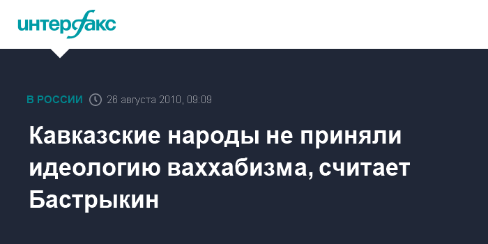 Москва. 26 августа. INTERFAX.RU - Глава СКП РФ Александр Бастрыкин считает, что идея ваххабизма теряет своих сторонников на Северном Кавказе.