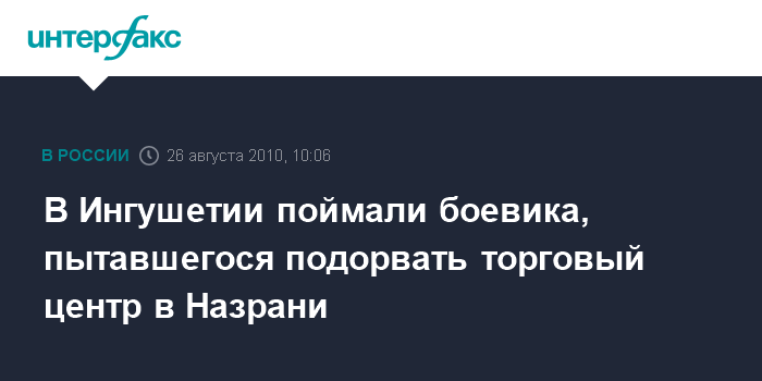 Москва. 26 августа. INTERFAX.RU- Боевик, заминировавший в субботу торговый центр "Карат" в Назрани, задержан сотрудниками МВД и ФСБ, сообщил "Интерфакс" в четверг источник в правоохранительных органах.