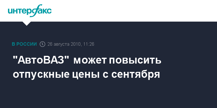 Москва. 26 августа. INTERFAX.RU - ОАО "АвтоВАЗ" может с сентября изменить отпускные цены на автомобили, сообщил журналистам президент компании Игорь Комаров.