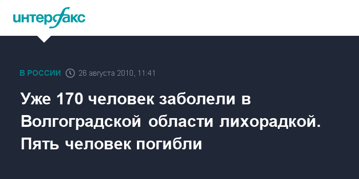Волгоград. 26 августа. INTERFAX.RU - Количество зарегистрированных больных лихорадкой Западного Нила (ЛЗН) в Волгоградской области увеличилось до 170 человек, сообщили агентству "Интерфакс" в региональном управлении Роспотребнадзора в четверг.