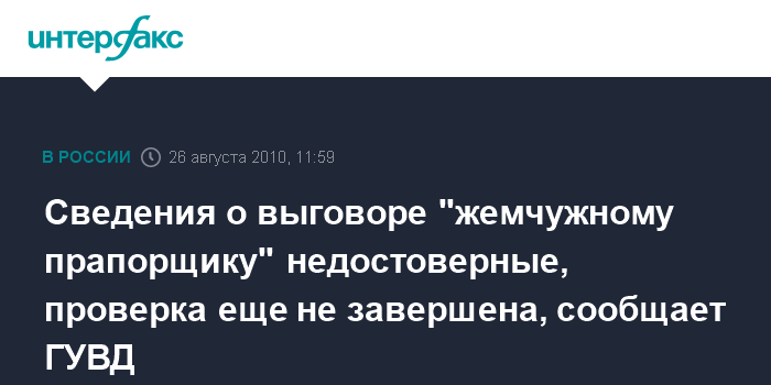 Санкт-Петербург. 26 августа. INTERFAX.RU - ГУВД Петербурга опровергает информацию об объявлении выговора "жемчужному прапорщику" за его поведение при разгоне митинга оппозиции у Гостиного Двора 31 июля.