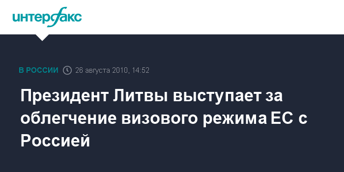 Брюссель. 26 августа. INTERFAX.RU - Вильнюс готов поддержать либерализацию Европейским союзом визового режима с Россией и Белоруссией, заявила президент Литвы Даля Грибаускайте, сообщило в четверг близкое к ЕС интернет-издание Euroobserver.