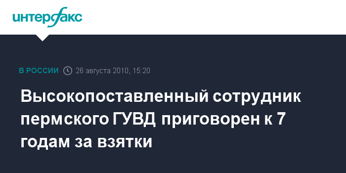 Высокопоставленный сотрудник пермского ГУВД приговорен к 7 годам за взятки