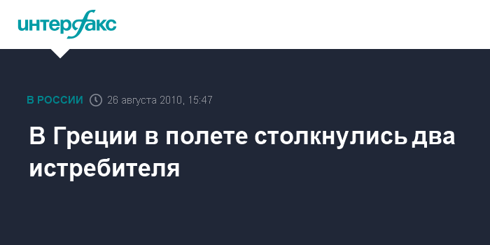 Афины. 26 августа. INTERFAX.RU - Два истребителя греческих ВВС Ф-16 столкнулись в воздухе в четверг, сообщают греческие СМИ.