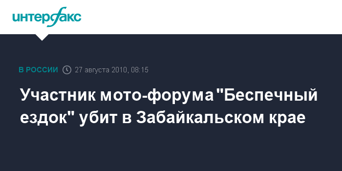 Участник мото-форума "Беспечный ездок" убит в Забайкальском крае