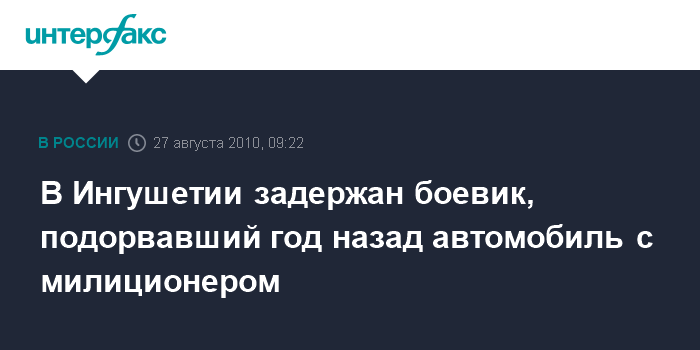 По словам собеседника агентства, сотрудники МВД России в Ингушетии и ОВД по Малгобекскому району задержали безработного местного жителя, который в июне 2009 года подорвал автомашину "Ока", в результате чего погиб сотрудник милиции.