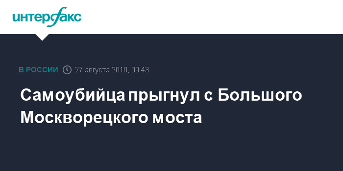 Москва. 27 августа. INTERFAX.RU - Неработающий житель столицы пытался покончить жизнь самоубийством, бросившись в воду с Большого Москворецкого моста, сообщили "Интерфаксу" источники в правоохранительных органах в пятницу.
