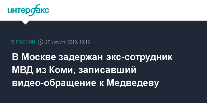 В Москве задержан экс-сотрудник МВД из Коми, записавший видео-обращение к Медведеву