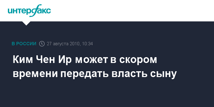 Лондон. 27 августа. INTERFAX.RU - Неожиданная поездка лидера КНДР Ким Чен Ира в Китай, по мнению некоторых аналитиков, указывает на то, что он, возможно, готовится к скорой передаче власти своему младшему сыну, Ким Чен Уну, пишет британская The Guardian.