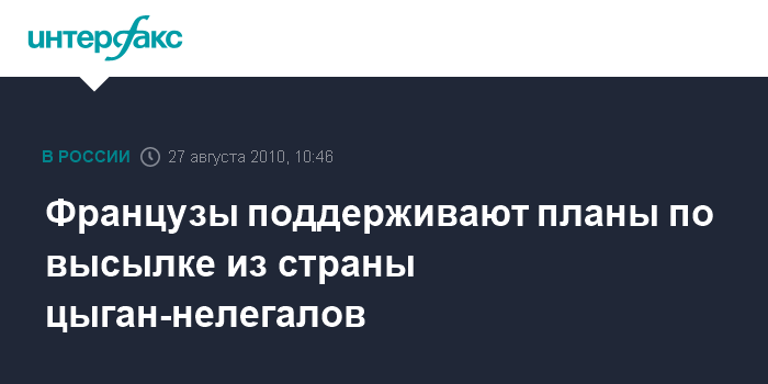 Опрос, проведенный для "Фигаро", показал, что 69% французов считают правильным решение о закрытии нелегальных цыганских поселений, а 65% одобряют высылку в Румынию и Болгарию цыган, нелегально проживающих на территории Франции.