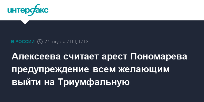 "Это предупреждение всем нам перед 31-м августа. Это попытка давления. Нас пугают, чтобы мы не выходили на Триумфальную площадь ", - сказала Алексеева "Интерфаксу" в пятницу.