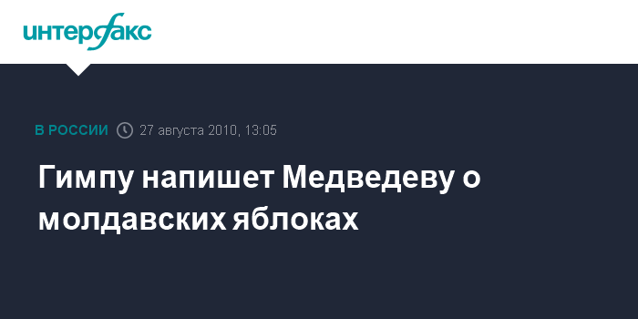 "Я получил поздравление по случаю Дня Независимости от президента России Дмитрия Медведева. Я направлю благодарность за поздравления. Думаю, что, каким-то образом затрону и проблему экспорта молдавской продукции", - сказал Гимпу в пятницу "Интерфаксу", отказавшись говорить на эту тему более подробно.
