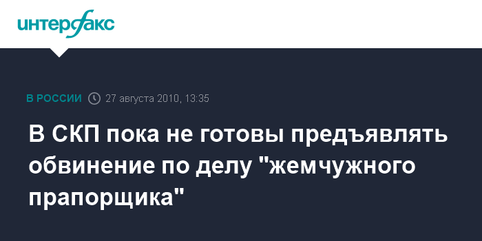 Санкт-Петербург. 27 августа. INTERFAX.RU - Следственное управление СКП РФ по Петербургу пока не готово предъявлять кому-либо обвинение по делу "жемчужного прапорщика".
