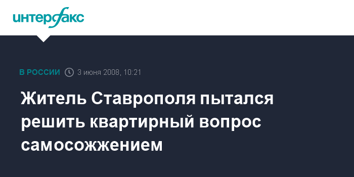 Житель Ставрополя пытался решить квартирный вопрос самосожжением