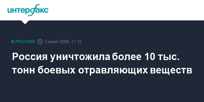 Россия уничтожила более 10 тыс. тонн боевых отравляющих веществ