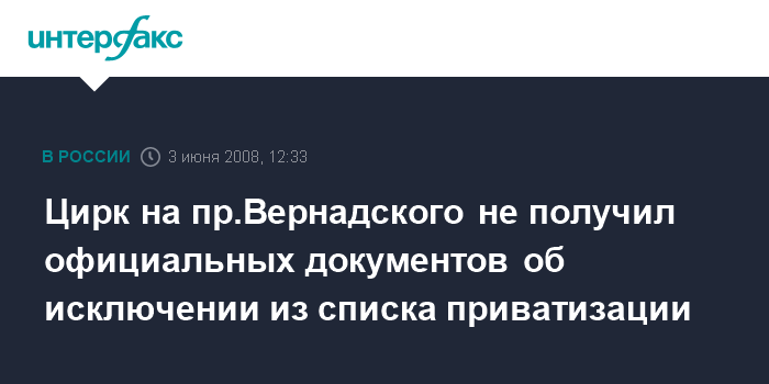 Цирк на пр.Вернадского не получил официальных документов об исключении из списка приватизации