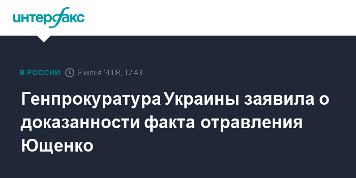 Москва. 3 июня. INTERFAX.RU - Генеральная прокуратура Украины заявляет, что факт отравления в 2004 г. кандидата в президенты Украины Виктора Ющенко доказан следственными действиями, потому высказанные народным депутатом Давидом Жванией заявления не соответствуют действительности. Такое заявление Генпрокуратура обнародовала во вторник, сообщает пресс-служба ведомства.
