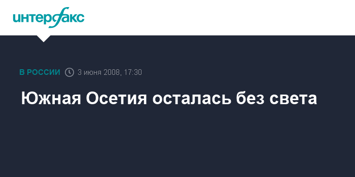 Москва. 3 июня. INTERFAX.RU - В Республику Южная Осетия прекращена подача электроэнергии.
