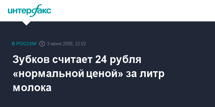 "Я посмотрел сегодня, в магазине молоко стоит 24 рубля - это нормальная цена. Я посмотрел, где стоят молоко и молочный продукт (на основе сухого молока - ИФ), и сколько они стоят", - сказал В.Зубков журналистам во вторник в Чебоксарах.