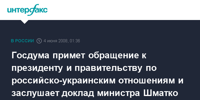 Госдума примет обращение к президенту и правительству по российско-украинским отношениям и заслушает доклад министра Шматко