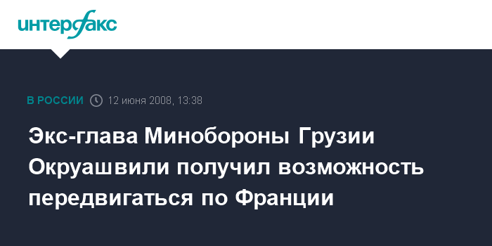 Тбилиси. 12 июня. ИНТЕРФАКС - Парижский суд снял ограничения на передвижение бывшего министра обороны Грузии Ираклия Окруашвили, установленные после его освобождения из предварительного заключения, сообщила в четверг "Интерфаксу" адвокат экс-министра Эка Беселия.
