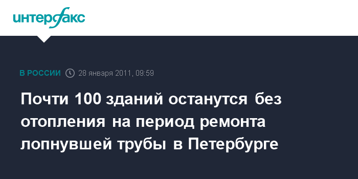Почти 100 зданий останутся без отопления на период ремонта лопнувшей трубы в Петербурге