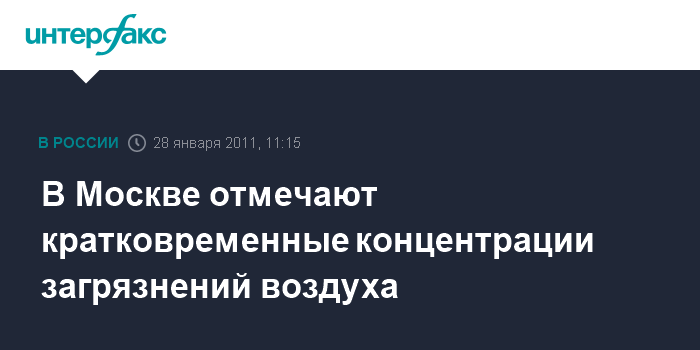 Москва. 28 января. INTERFAX.RU - В Москве отмечается кратковременное накопление загрязняющих веществ в воздухе, сообщили "Интерфаксу" в пресс-службе департамента природопользования и охраны окружающей среды в пятницу.