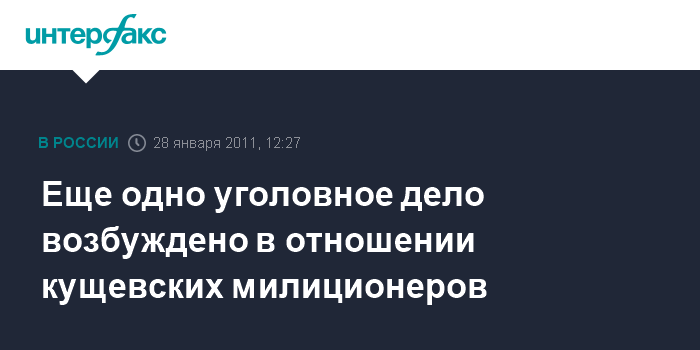 Москва. 28 января. INTERFAX.Ru - Следователи возбудили дело против начальника отделения по делам несовершеннолетних ОВД по Кущевскому району Краснодарского края.