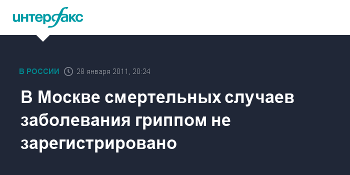 Москва. 28 января. INTERFAX.RU - В столице смертельных случаев заболевания гриппом не зарегистрировано, заявил журналистам в пятницу глава московского департамента здравоохранения Леонид Печатников.