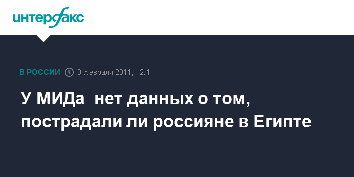 Москва. 3 февраля. INTERFAX.RU - В МИД России пока не располагают информацией о россиянах, которые могли пострадать в результате столкновений сторонников и противников президента Египта Хосни Мубарака в Каире.