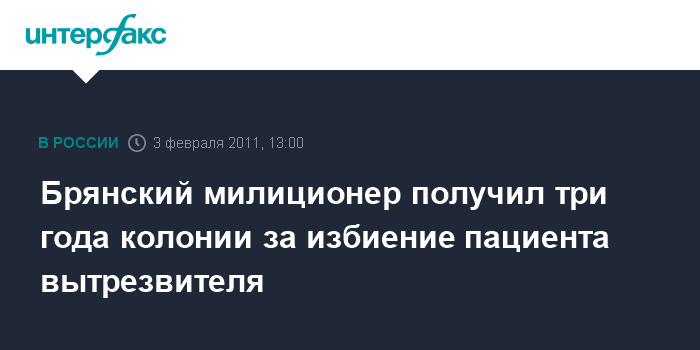 Брянский милиционер получил три года колонии за избиение пациента вытрезвителя