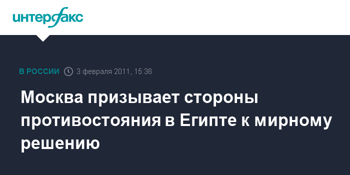Москва. 3 февраля. INTERFAX.RU - МИД России призвал все политические силы Египта воздержаться от насилия.