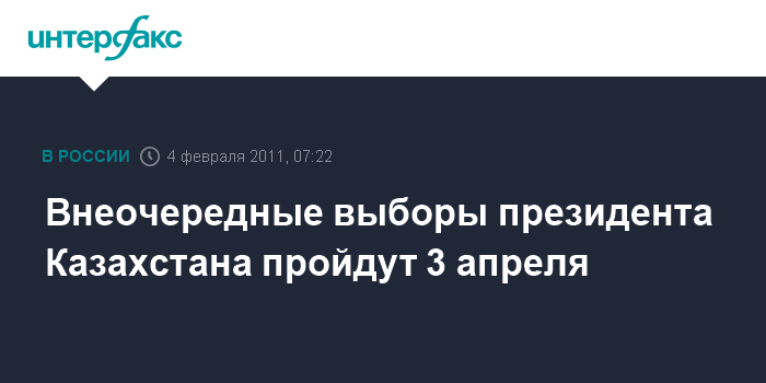 Астана. 4 февраля. ИНТЕРФАКС-КАЗАХСТАН - Внеочередные выборы президента Казахстана состоятся 3 апреля 2011 года.