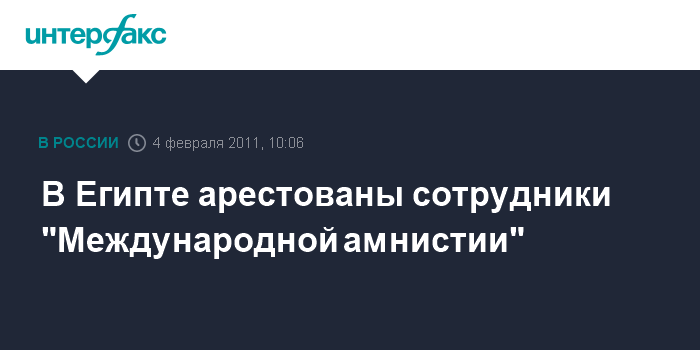 Лондон. 4 февраля. INTERFAX.RU - Двое сотрудников правозащитной организации "Международная амнистия" арестованы в Каире, говорится в сообщении, опубликованном на сайте организации.