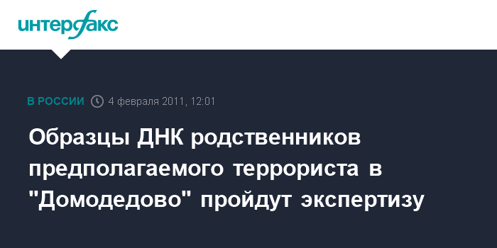 Образцы ДНК родственников предполагаемого террориста в "Домодедово" пройдут экспертизу