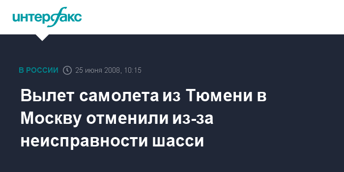 Вылет самолета из Тюмени в Москву отменили из-за неисправности шасси