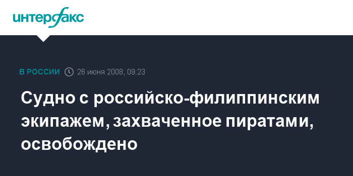 Судно с российско-филиппинским экипажем, захваченное пиратами, освобождено