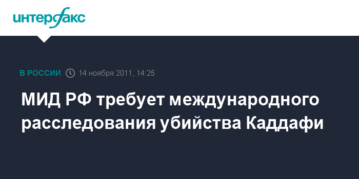 МИД РФ требует международного расследования убийства Каддафи