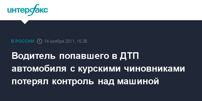Курск. 14 ноября. INTERFAX.RU - Причиной ДТП в Курской области в минувшую субботу с участием автомобиля Toyota Camry, в котором ехали крупные чиновники, стало то, что водитель не справился с управлением, сообщает пресс-служба регионального УМВД.