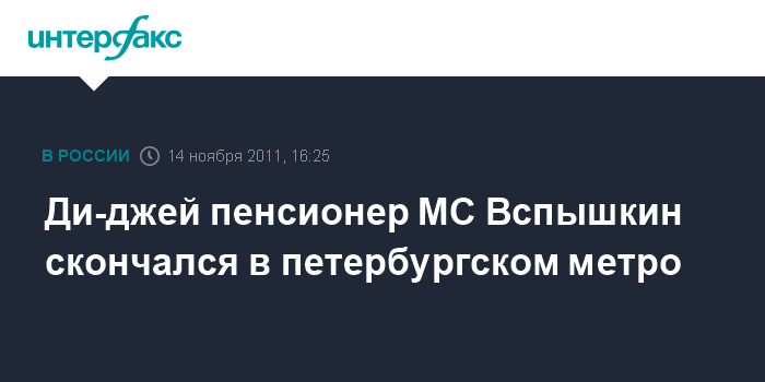Ди-джей пенсионер МС Вспышкин скончался в петербургском метро
