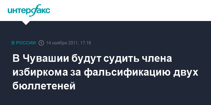 Чебоксары. 14 ноября. INTERFAX.RU - Батыревский районный суд Чувашии рассмотрит уголовное дело о фальсификации членом участковой избирательной комиссии итогов голосования и избирательных документов на выборах в органы местного самоуправления в марте 2011 года.