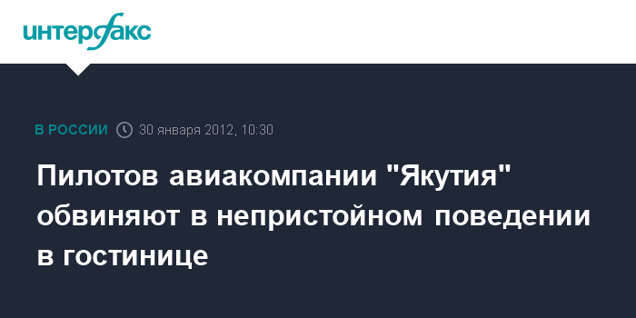 Пилотов авиакомпании "Якутия" обвиняют в непристойном поведении в гостинице